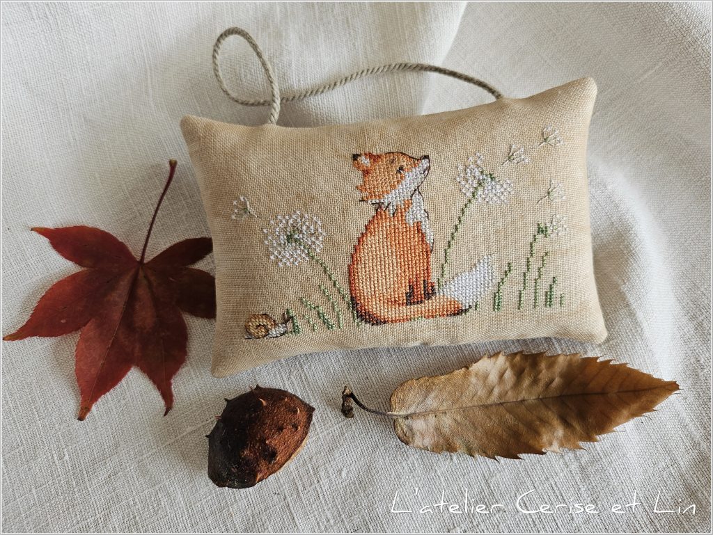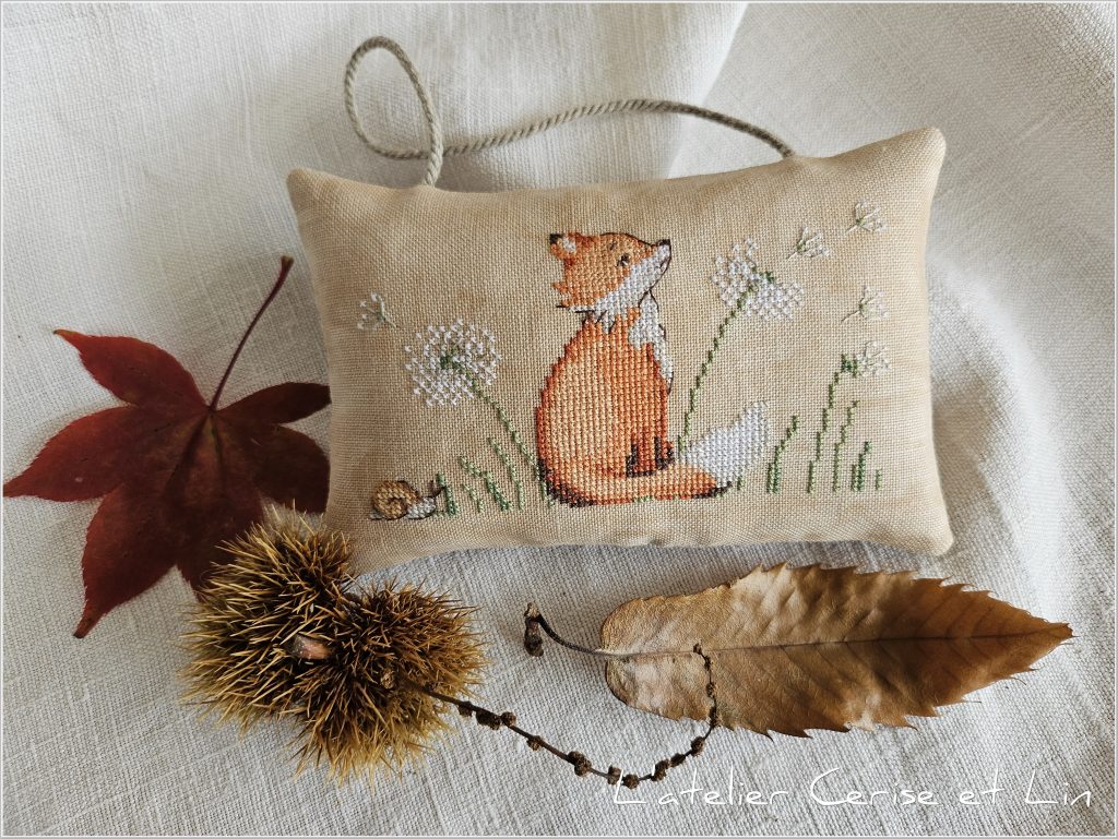 L’an dernier, j’ai craqué pour deux jolies grilles d’automne d’une créatrice italienne. J’ai profité de l’arrivée de cette saison pour réaliser le premier modèle, un joli petit renard aux couleurs chatoyantes. Monté en petit coussin à suspendre ou à poser, tout simplement…